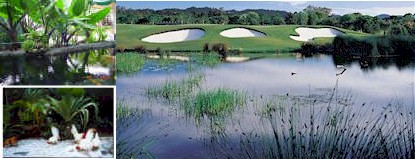 Golf Courses provide a unique opportunity to create within their boundaries a 'Wildlife Sanctuary', which preserves and enhances an often rich variety of native birdlife, animals and vegetation, thereby enriching the ecology of the region. Many golf courses house significant areas of natural landscape (some 65% of the site), consisting of rough and non golf play areas, natural grasses, tress and shrubs.Careful management actively promotes desirable habitat via sound practices such as weed control to eliminate competition on the more delicate endemic species.